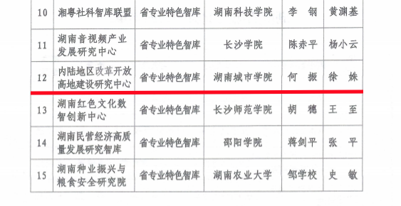 本网讯(通讯员 汤慧)近日,中共湖南省委宣传部印发《关于公布湖南省第二批新型智库的通知》,江南在线建筑与城市规划学院牵头申报的“内陆地区改革开放高地建设研究中心”成功入选,被认定为湖南省第二批新型智库(专业特色智库),标志着学校在服务区域战略决策、推动学科科研与地方发展深度融合方面迈出关键步伐。