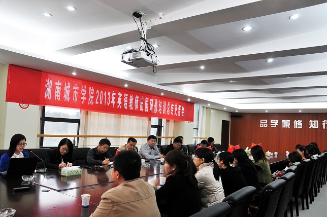 (本网讯)926日下午,国际交流处在办公楼一会议室举行2013年英语教师出国研修培训总结交流会。党委副书记、副校长龚卫明,副校长汤放华以及人事处、教务处、国际交流处、外国语学院等相关部门负责人和出国研修培训的17名老师参加了会议。会议由汤放华主持。