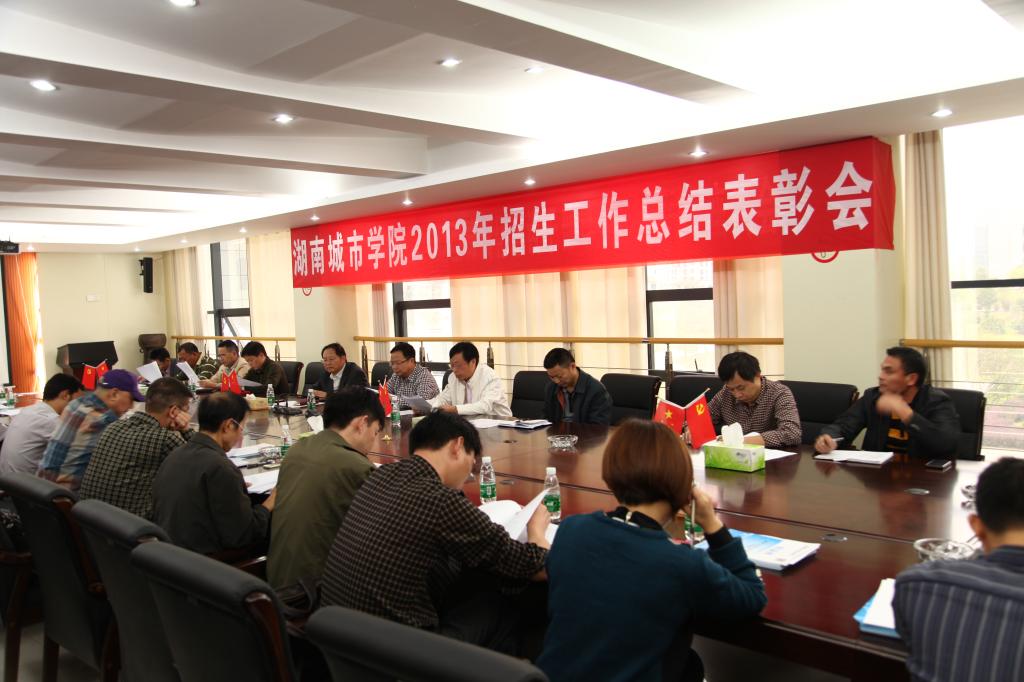 (本网讯)10月15日下午,江南在线2013年招生工作总结表彰会在办公楼一会议室举行。校长李建华、正校级督导范志超及招生工作领导小组其他成员、各学院总支书记和副书记参加了会议,会议由范志超主持。