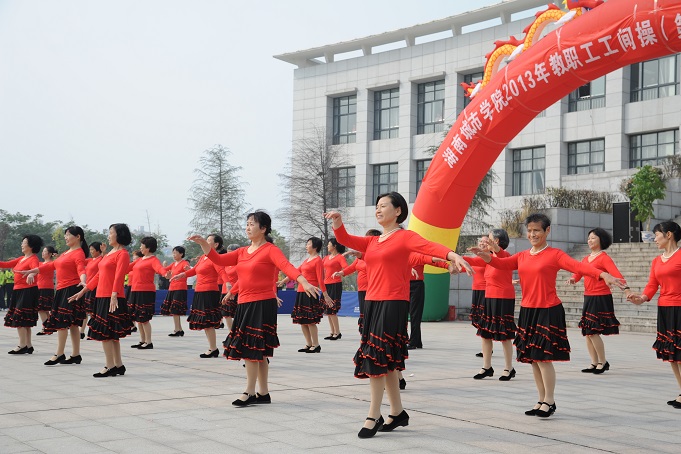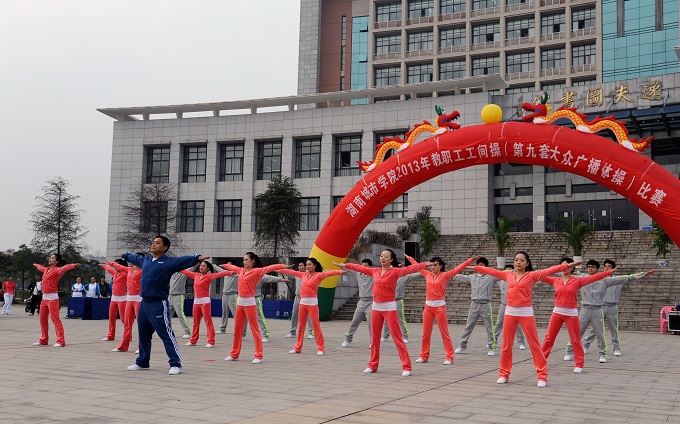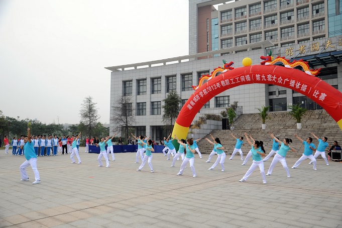 (本网讯) 10 月22 下午学校教职工工间操(第九套大众广播体操)比赛在兴城广场隆重举行,全校22个分工会及离退休老同志共23支代表队500余名教职工参加了比赛,上千名师生到现场为参赛队伍加油呐喊。