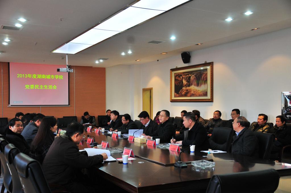 (本网讯)根据省委教育工委的工作部署,2013 12 31 日下午 ,学校领导班子在图书馆会议室召开了专题民主生活会。省委教育工委副书记、省教育厅党组副书记、副厅长肖国安,省委教育工委组织部副部长刘洪秋出席会议并指导工作。党委书记赵运林,党委副书记、校长李建华等12位省管党员干部参加会议,23名学校党代会代表列席会议。