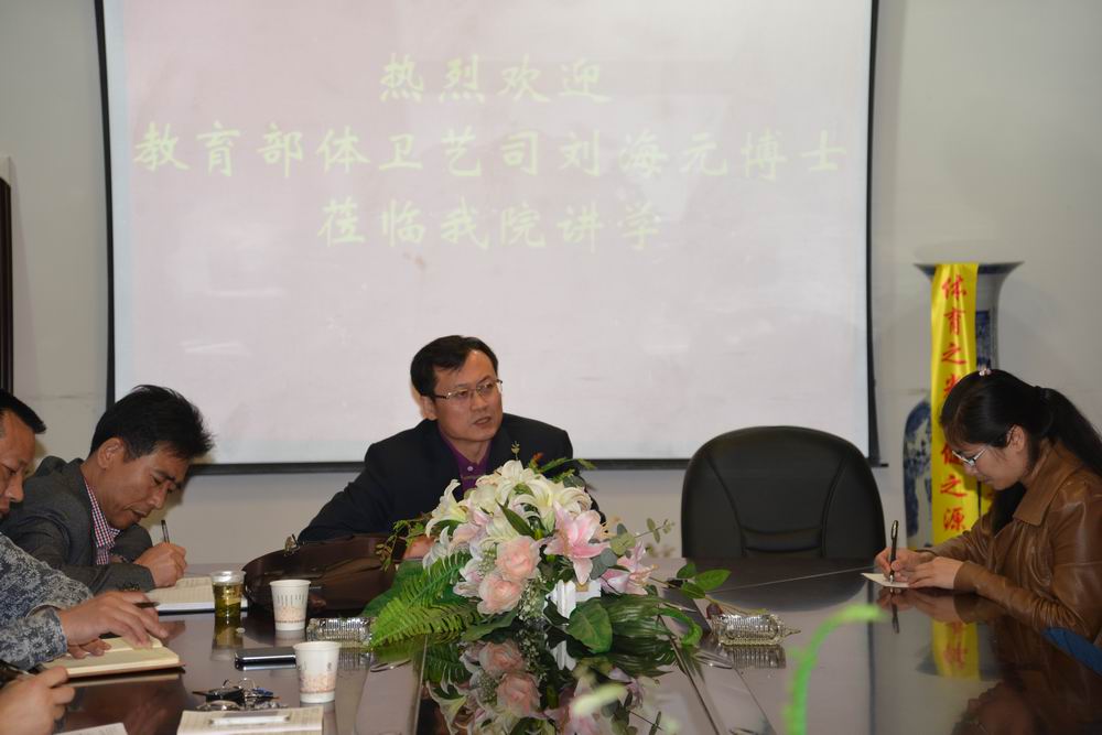 晚,教育部体育卫生与艺术教育司处长、首都体育学院教授、我校特聘会龙学者刘海元博士应学校邀请在体育学院会议室作专题学术讲座。讲座由体育学院党总支书记熊兴吾主持,体育学院全体教师参加讲座。