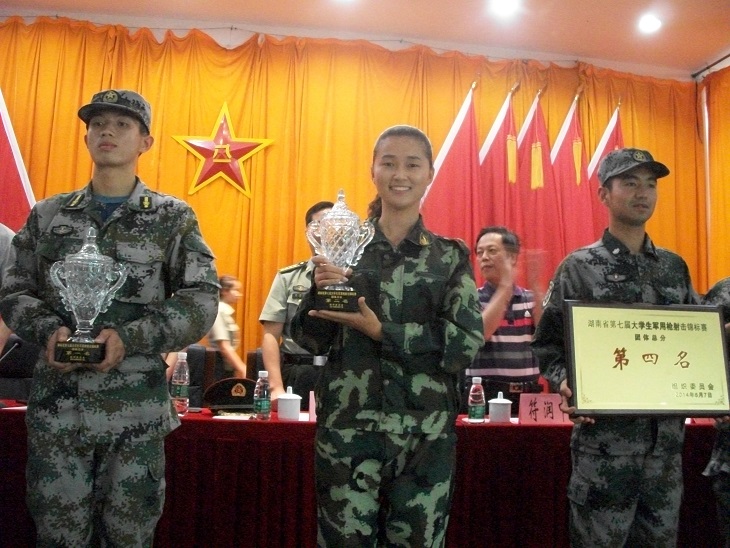 (本网讯)近日,由湖南省教育厅、湖南省军区司令部联合举办的湖南省第七届大学生军用枪射击锦标赛在长沙落幕。我校射击队不畏强手,获得男女团体亚军,同时还获得女子团体速度射击和女子团体精度射击季军。何柳等六名参赛队员获得了“优秀射手”荣誉称号。