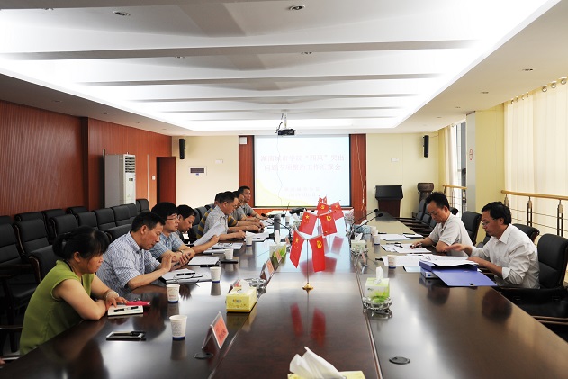 会上,党委书记赵运林就学校“四风”问题专项整治工作情况作了汇报。他从强化组织领导、抓好责任落实、专项整改进展情况、即整即改情况和下一阶段工作等五个方面详细汇报了学校四风问题专项整治工作情况。