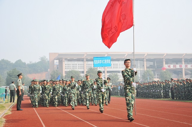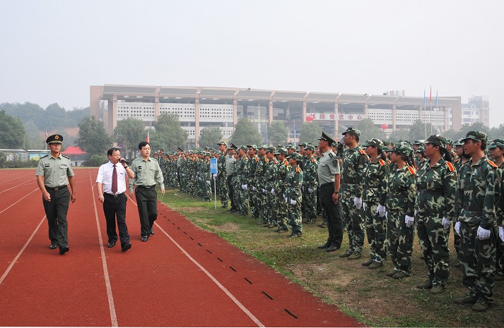 随后,校长李建华在武装部部长贺正宜和国防科技大学指挥军官基础教育学院教导员徐珂少校的陪同下,检阅了由2014级参训新生组成的方队。一声声同学们好首长好同学们辛苦了为人民服务的口号此起彼伏、震耳欲聋,响彻整个操场。