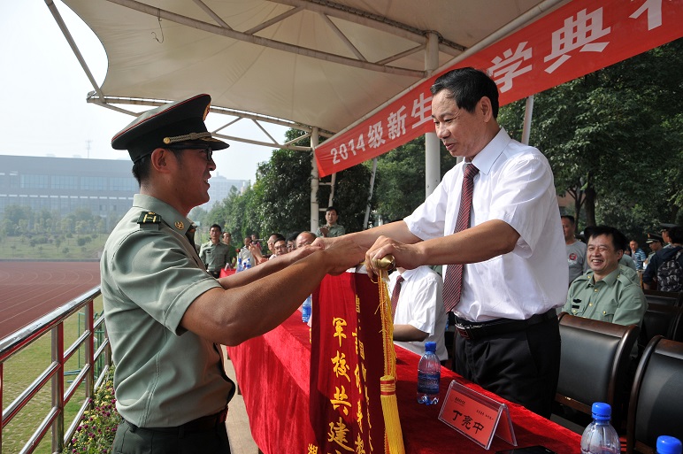 最后,副校长丁亮中代表学校向国防科技大学赠送了锦旗。(孔军)
