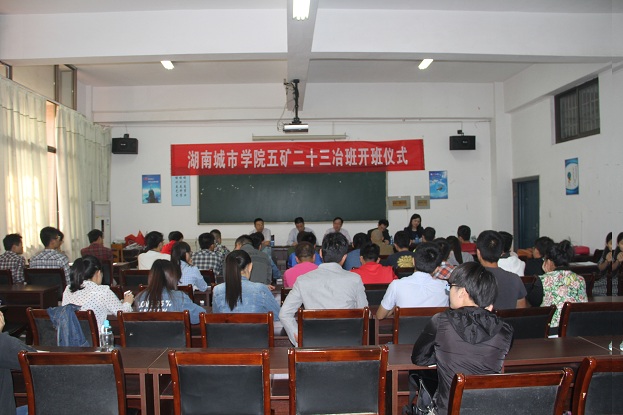 (本网讯)1014日下午,我校五矿二十三冶校企合作班开课仪式在信息楼122室举行。五矿二十三冶成本管理部总经理刘嗣扬、人力资源部培训主管张丹丹,我校招生就业处、教务处、土木院、城市管理学院等部门以及五矿二十三冶校企合作班的42名学生(学员)一同参加了本次开班典礼。开班典礼由招生就业处处长文瑞明主持。