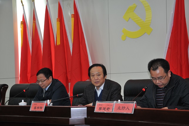 冀学锋代表省委派驻高校第一督导组讲话,对学校教育实践活动开展情况给予了充分肯定和高度评价,对李建华代表学校党委作的总结报告表示完全赞同。他指出,江南在线教育实践活动有自己的特点,一是主要领导带头示范,做到了行在先,以上率下,树立了标杆,班子其他成员也切实做到了认识高一层、学习深一步、实践先一着、剖析解决问题先一筹;二是落实规定动作做到了不走样、不缩水,打牢了学习教育、听取意见这个基础,找准了查摆问题、开展批评这个关键,落实了整改落实、建章立制这个根本;三是创新“自选动作”,做到了有特色、有亮点,面向学生、教职工、离退休老同志的“三位一体”工程做到了事事有着落、件件有回应;四是做到了“两促进、双丰收”。