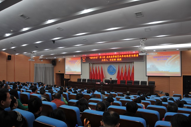 (本网讯)1125日下午,学校在逸夫图书馆报告厅举行德智讲堂第13讲,特邀长沙理工大学党委书记付宏渊教授做题为《关于高等教育改革的思考》的专题辅导报告。学校副科级以上干部,党总支部、直属支部委员,教工党支部书记,学生党支部书记,马克思主义学院全体教师,机关党总支部全体党员等300余人出席报告会。报告会由党委书记 李建华 教授主持。