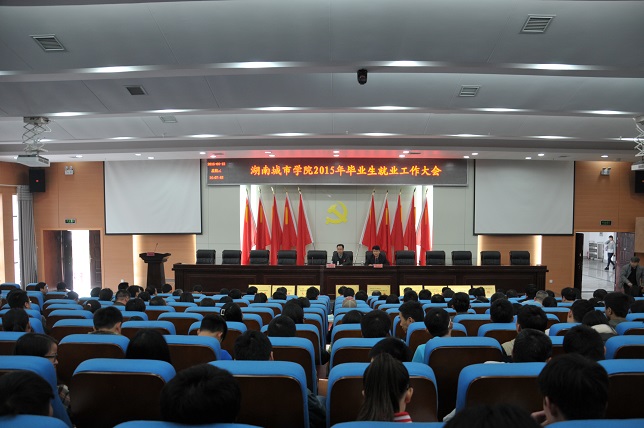 汤放华副校长在大会上作了题为《把握新常态,争取新作为,齐心协力开创我校毕业生就业创业工作新局面》的报告。报告回顾了2014年毕业生就业工作基本情况和主要成绩,总结了工作的主要经验与体会,并对2015年学校毕业生就业工作提出了工作设想。2014年我校荣获湖南省大学生就业创业示范校称号。