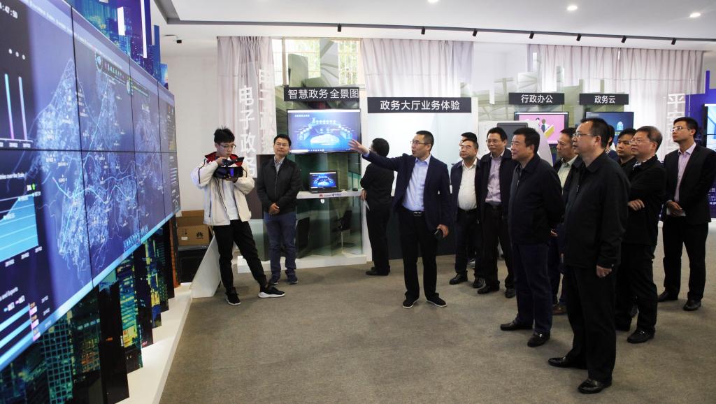 陈飞一行先后参观了湖南新型智慧城市研究院华为展厅、研发中心和数字化城乡空间规划关键技术湖南省重点实验室。参观过程中,校长李建奇简要介绍了学校改革发展情况,重点就湖南新型智慧城市研究的建设情况和我校社会服务方面取得的成绩进行了汇报。湖南新型智慧城市研究院、规划建筑设计研究院、信息与电子工程学院等部门负责人,汇报了学校在与企业开发新技术新业态课程资源,自主研发无人机无人船服务于智慧城市规划建设与生态文明建设等方面取得的突出成效。