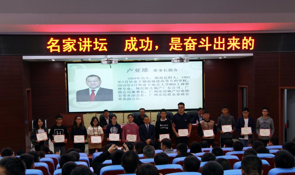 卢亚雄系我校89级土木工程系校友,92年从我校毕业后进入中建五局工作,04年入职恒大集团,现为广东和广西公司董事长,并荣获2017年中国城市可持续发展推动力“金钻奖”年度地产杰出人物等荣誉,带领恒大地产广东公司斩获南方都市报评选的2017年度影响力企业和中国地产时代百强榜颁发的房企营销创新大奖。(文/校友办 图/唐博远)