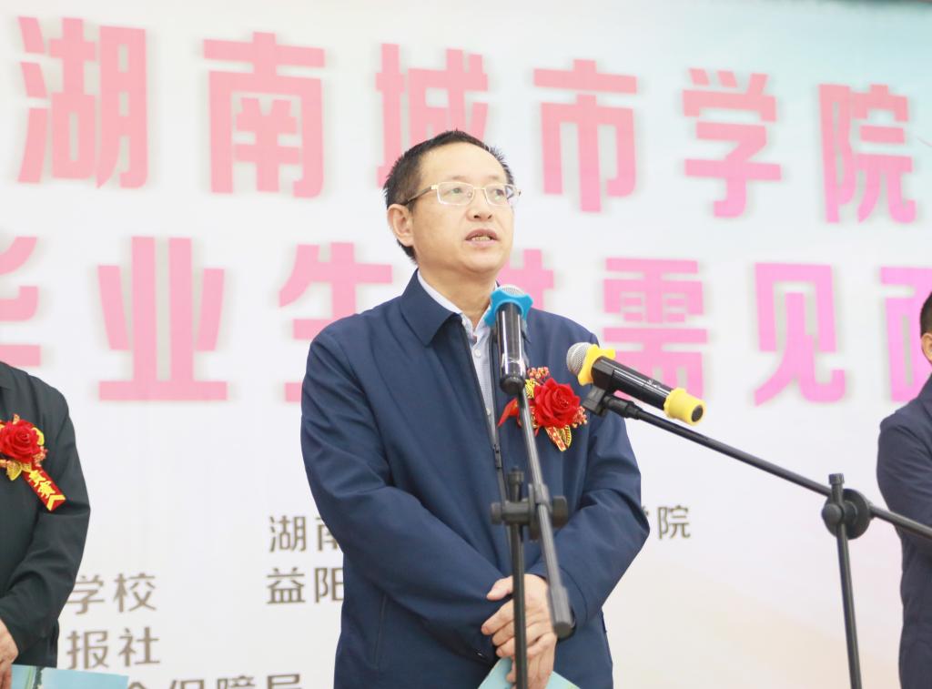 本次供需见面会由湖南省教育厅主办,江南在线、湖南工艺美术职业学院、益阳医学高等专科学校、益阳职业技术学院承办。益阳市人民政府、益阳市人力资源和社会保障局、益阳市教育局、湖南工艺美术职业学院、益阳医学高等专科学校、益阳职业技术学院等相关单位领导和我校在家的校领导出席了开幕式。
