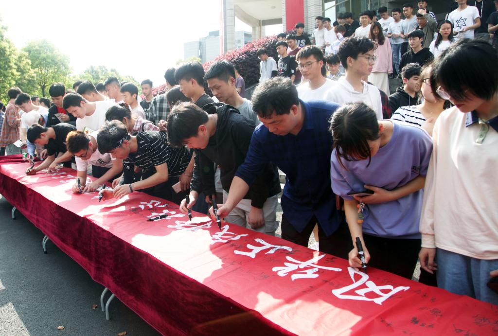 仪式结束后,与会领导、老师及学生们一同在宣传横幅上签字,部分学子就应征入伍事宜进行了咨询。(文/陈泳言 戴思敏 图/博夕)