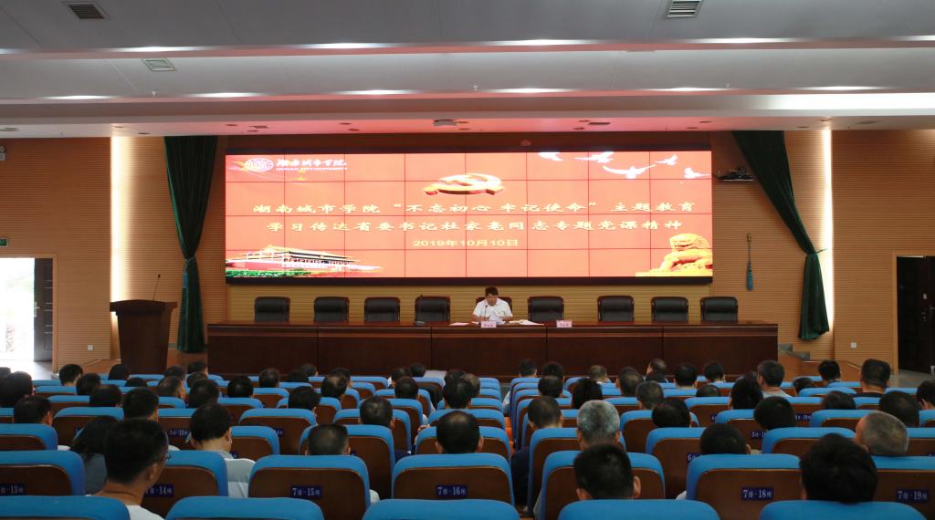 (本网讯)10月10日下午,江南在线在图书馆报告厅召开专题会议,传达学习省委书记杜家毫10月8日专题党课精神,研究贯彻落实意见。党委书记罗成翼传达杜家毫同志专题党课精神,党委副书记汤放华主持会议,学校“不忘初心、牢记使命”主题教育专题读书班全体成员参加。