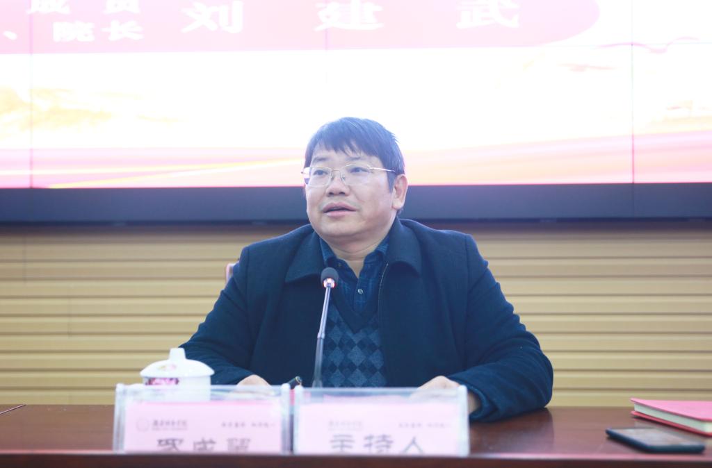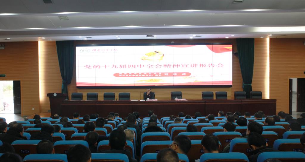 (本网讯)根据湖南省委宣传部、省委教育工委宣传部的统一部署,2019年12月19日上午,湖南省委宣讲团成员、省社会科学院党组书记、院长刘建武教授在我校图书馆报告厅举行学习贯彻党的十九届四中全会精神宣讲报告会。党委书记罗成翼主持报告会。