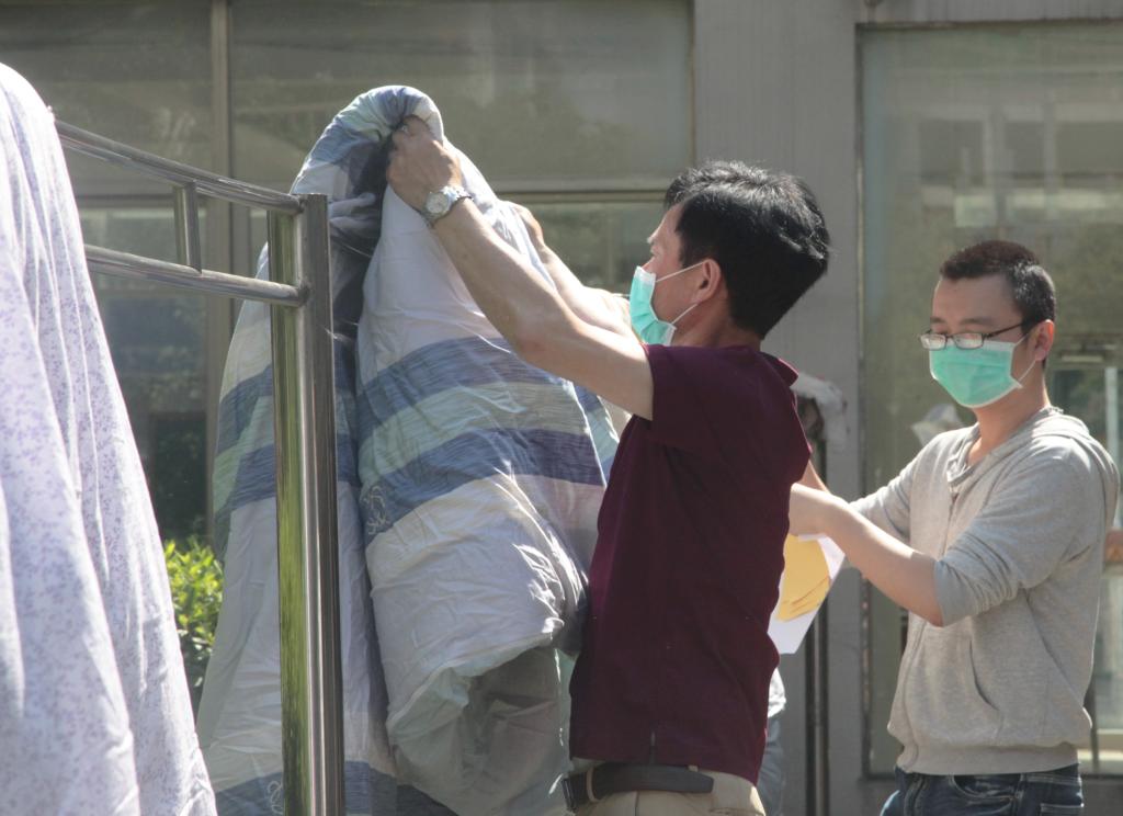 想学生之所想,急学生之所急,4月29日,江南在线最大的二级学院——土木工程学院,率先发起“迎返校晒温暖”活动。趁着艳阳高照的大好天气,该院学工办、团委组织发动全体院领导、辅导员、毕业班班主任和部分在校教师党员40余人,分组深入学生公寓,为219间毕业生寝室开窗通风、晒被子。针对33间一楼寝室,环境潮湿,被子更容易滋生细菌,他们将所有盖被、垫被、枕套等床上用品全部搬到室外晾晒。为了防止被子出现“张冠李戴”的情况,细心的老师们专门对床铺和被子进行了编号。