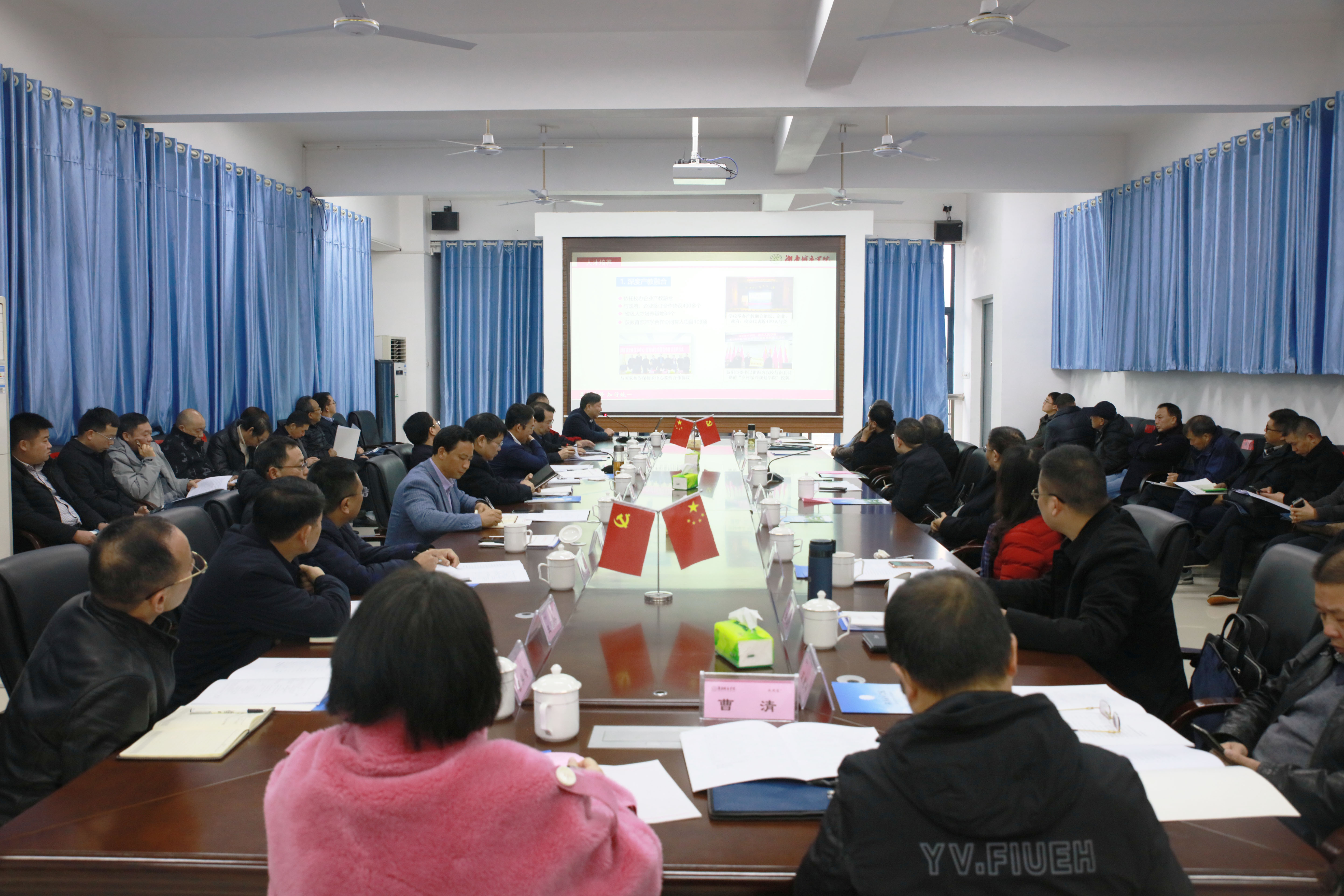 副校长谭献良对学校学科及校办产业发展情况进行了简介。益阳市通信发展管理办公室常务副主任孟正兵、益阳胜希机械设备制造有限公司董事长肖志军、湖南艾华集团股份有限公司中央研究院院长贾明、华翔翔能电气股份有限公司、益阳市城市规划设计院总工程师石凌辉和湖南橡塑密封件厂有限公司董事长昌盛昌等企业负责人分别就企业如何与高校开展好产学研合作进行了发言交流。