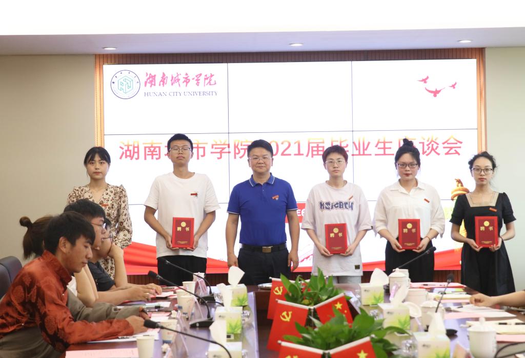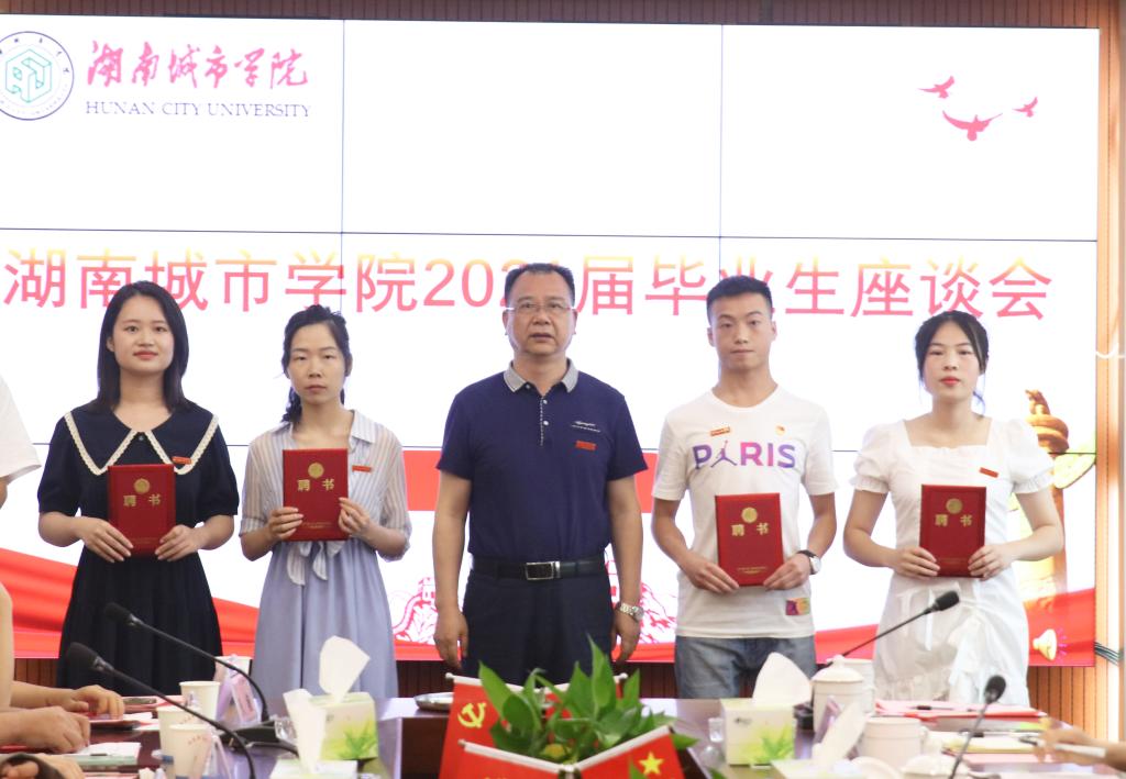 会上,15名毕业生代表踊跃发言。人文学院李珺被中国人民大学法学院录取,她由衷表达了对学校严抓学风的认同。市政与测绘工程学院张巍、信息与电子工程学院邓琪、理学院叶雨辰、机械与电气工程学院罗方宏、体育学院尹霞、国际教育学院阳敏娇也考上了中南大学、湖南大学、湖北大学等重点大学的研究生,他们表达了不负学校培养、继续努力深造的决心。土木工程学院赵文博、管理学院谭文灵飞、材料与化学工程学院王栋林在中建一局、四局、五局等央企如愿就业,他们一致表示得益于学校“一二三四”应用型人才培养模式和良好的毕业生就业举措。管理学院群培是一名藏族学生,报考了西藏公务员正等待被录取的他,饱含深情地说:“我感恩党和国家的政策关怀,让我从一名喜马拉雅山下的牧民,成长为合格的大学生。也希望有更多大学生到祖国和人民最需要的地方去。”艺术学院的张钊钊也正等待被西部计划志愿者录取,她表达了为西部建设助力的美好憧憬。建筑与城市规划学院毕业生钱佳考上了浙江省兰溪市公务员,即将实现学成归来建设家乡的梦想。曾任江南在线习近平新时代中国特色社会主义思想读书会副会长的许韵瑜是一名中共党员,她考上了益阳乡镇的选调生,社团负责人的任职经历让她感受到了将专业知识学以致用的成就感和团队合作的意义。曾任校学生会主席的张继文,即将去往中联重工就业,他感慨学校近年来在基础设施建设、校园文化建设和人才培养质量上的日新月异,祝愿学校早日建成湖南城市大学。毕业生代表们纷纷表示,将永记“品学兼修 知行统一”的校训,永怀城院情,永为城院人,努力做到“今朝我以城院为荣,明日城院以我为荣”。