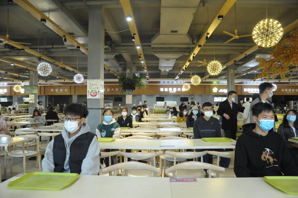 学生就餐时同向而坐。