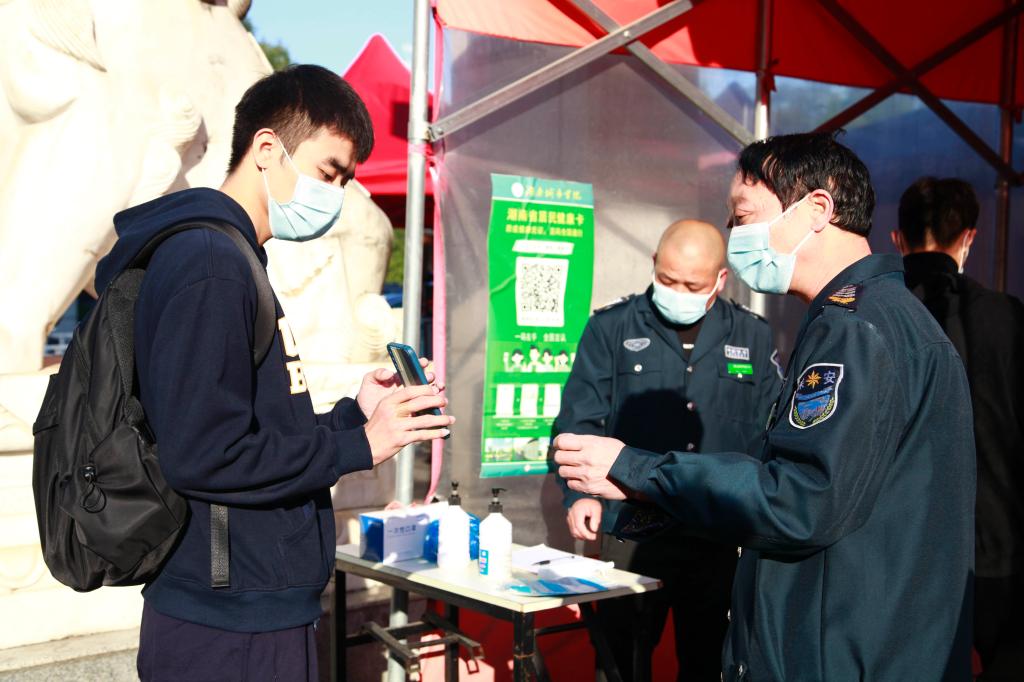 学生进校门时出示电子健康卡行程卡等。