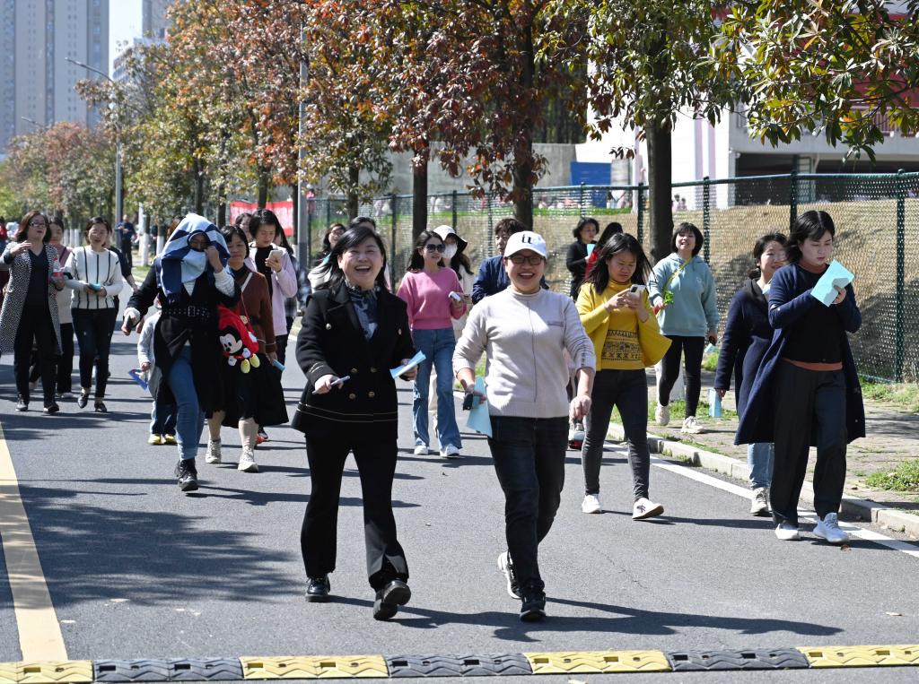 党委副书记何旭娟为参与步跑的女教职工鸣响第一枪。