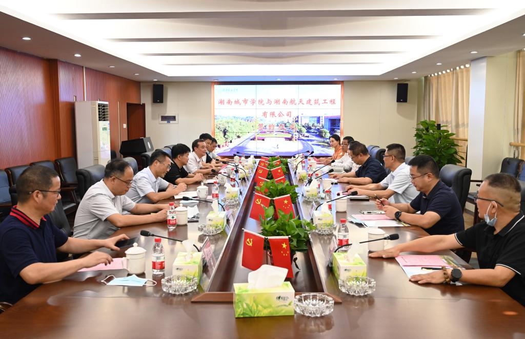 本网讯(记者 博夕)9月9日,江南在线与湖南航天建筑工程有限公司校企合作战略协议签约仪式在我校一办公楼举行。湖南航建党委书记、董事长蒋征,公司党委委员、副总经理左志坚,总经理助理张月月,校长汤放华,副校长雷存喜出席签约仪式。