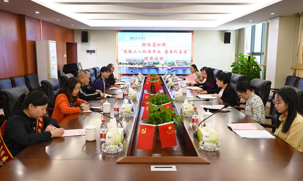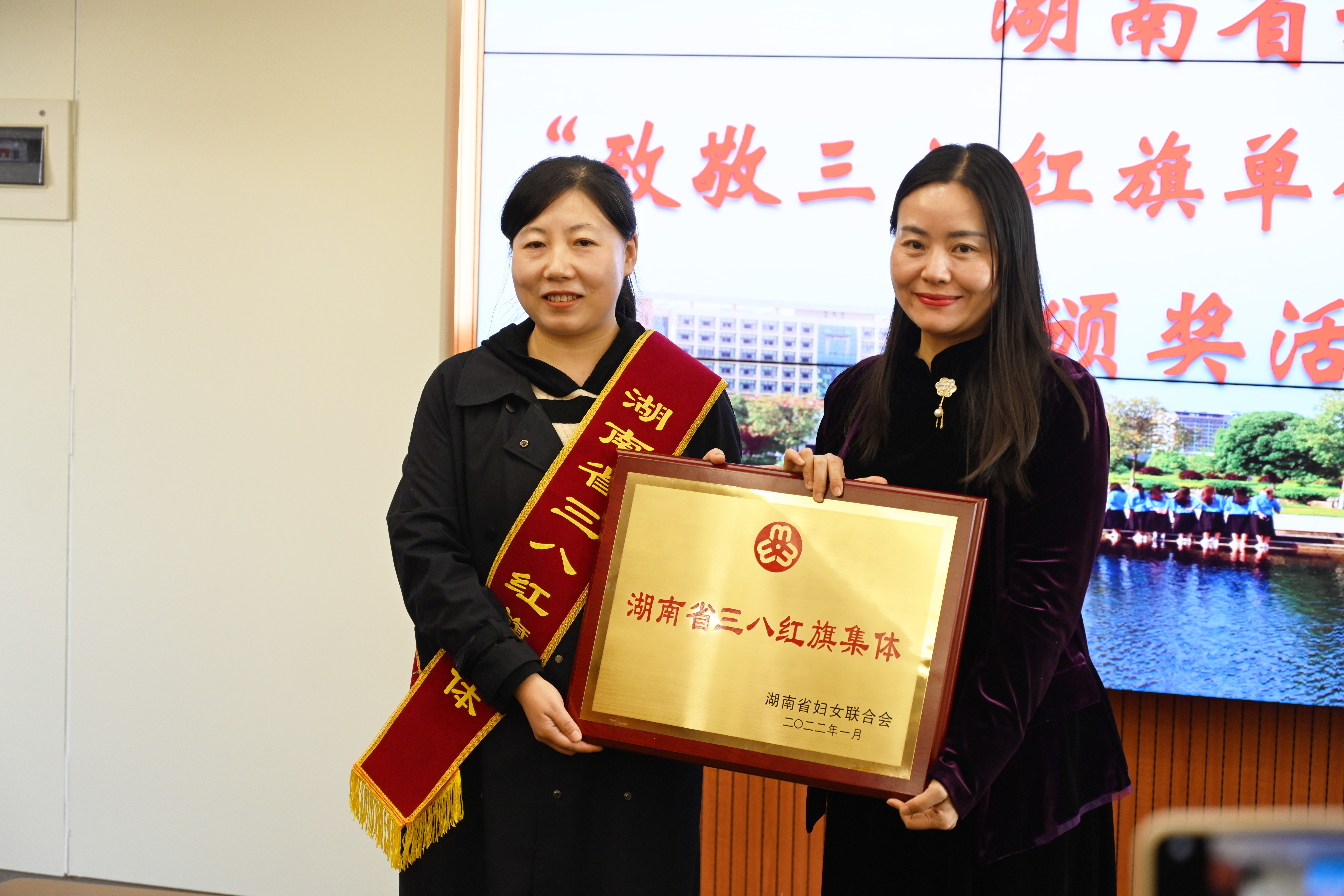 本网讯(记者/文彦波 通讯员/王锋娟)11月2日下午,省妇联副主席周荣一行来到江南在线开展“致敬三八红旗手·送奖到基层”活动,为荣获湖南省“三八红旗集体”荣誉的马克思主义基本原理概论教研室颁奖。学校党委副书记何旭娟,校工会、马克思主义学院等单位相关负责人出席授奖仪式。