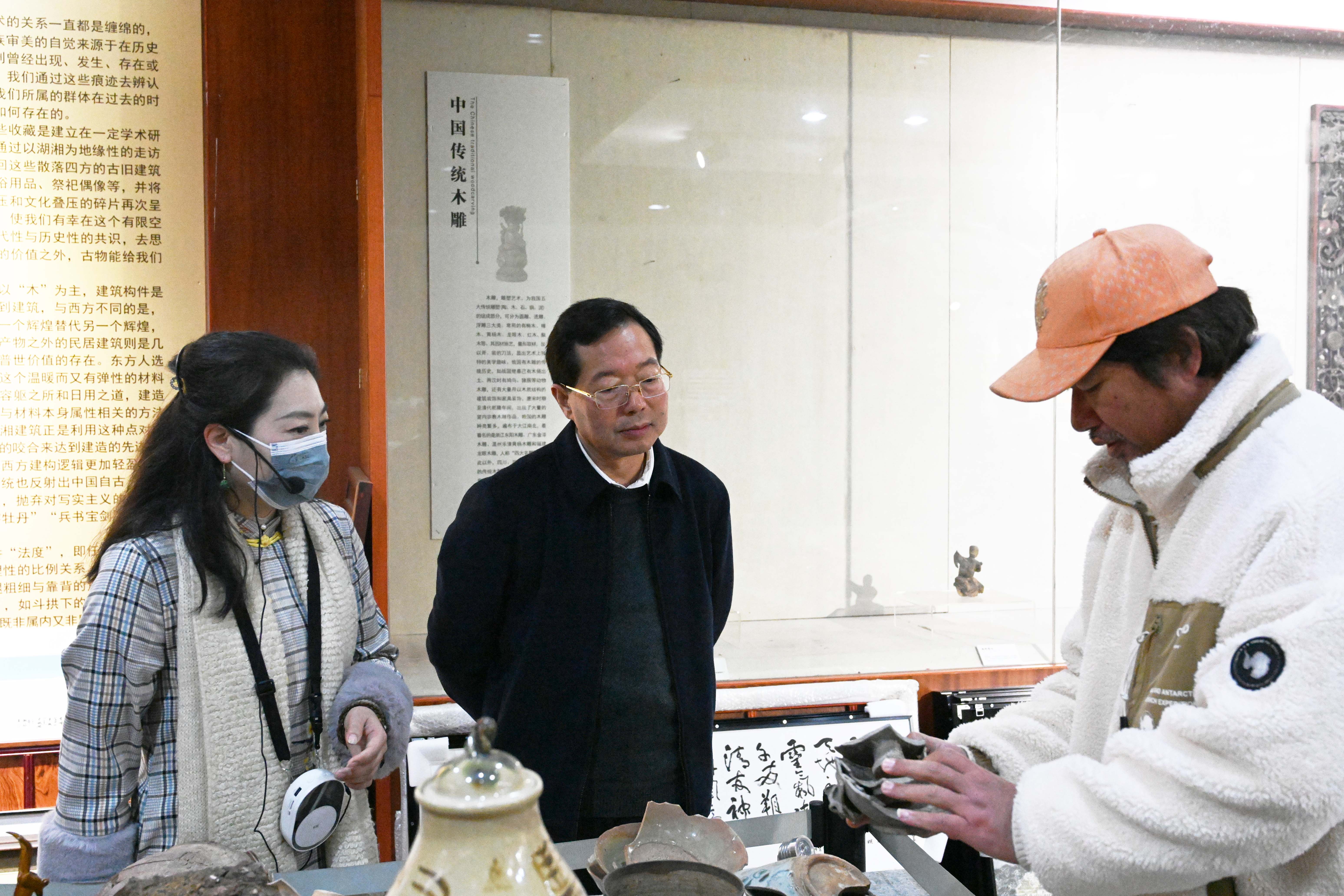 本网讯(通讯员 赵旭)2月17日,湖南省社科联党组书记、副主席(主持日常工作)胡代松一行来我校开展社科工作调研,实地走访我校“安化黑茶非遗传承基地”和“湖湘传统美术研究基地”,并召开专题座谈会。学校党委书记汤放华、副校长何振,益阳市社科联相关领导、益阳市兄弟院校科研部门主要负责人、学校科研处及相关社科类学院的主要负责人参加座谈会。