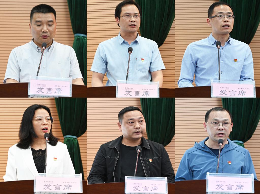 会上,读书班学员代表曾志伟、张光富、孟维、赵旭、黄智、周新邵等六位同志,分别代表二级学院组、党建工作组、教学工作组、科研工作组、学生工作组和管理服务组,先后结合主题,对照各自工作实际和岗位职责,交流了参加本次主题教育读书班的收获和心得。大家一致表示,通过读书班学习,更加深刻领会到习近平新时代中国特色社会主义思想的科学体系、核心要义、实践要求,全面系统把握这一重要思想的世界观、方法论和贯穿其中的立场观点方法,进一步提升了理论素养,坚定了理想信念,锤炼了党性修养,增强了工作本领。