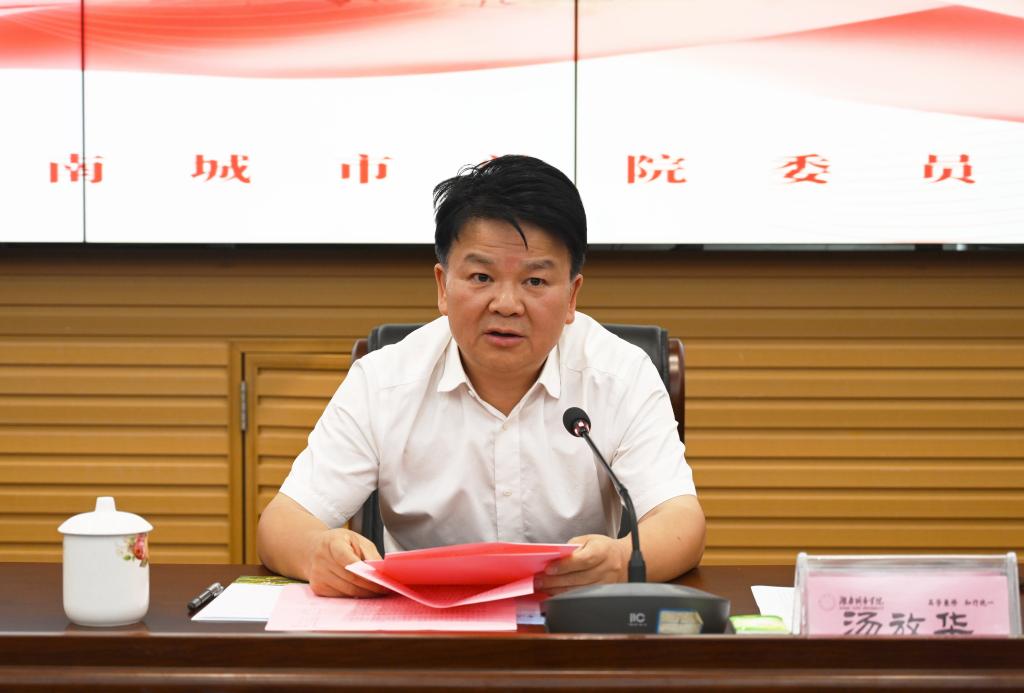 汤放华对广大干部同志提出三点要求:一要认真学习习近平新时代中国特色社会主义思想,坚定办好人民满意大学的信念。要把习近平总书记关于教育的重要讲话精神转化为将江南在线办成一所人民满意大学的坚定信念,将解决师生急难愁盼的问题作为自己的出发点和落脚点,始终秉承“以学生为本”的服务理念,不断提高教育获得感和满意度,真正将“造福学生”落实到具体的行动中。二要用习近平新时代中国特色社会主义思想武装头脑,进一步凝聚全校师生员工干事创业的共识。要坚持系统观念,强化系统思维,处理好要素与系统、内部与外部、局部与整体、当前和长远、主要矛盾和次要矛盾等方面的关系,紧紧扭住立德树人这一个根本任务,凝聚起合力培养合格接班人的高度共识,形成干事创业的强大合力。三要以习近平新时代中国特色社会主义思想为指导,积极推进学校高质量教育体系建设。要坚持问题导向,深入广大师生之中,直面那些长期以来影响正确价值观导向、教学质量、暖心服务、师生满意度获得感的顽瘴痼疾,以敢于斗争、担当作为、钉钉子的精神把这些问题一个个解决,在不断解决问题的过程中持续优化学校的教育体系,推动学校在高质量发展的新征程奋勇前行。