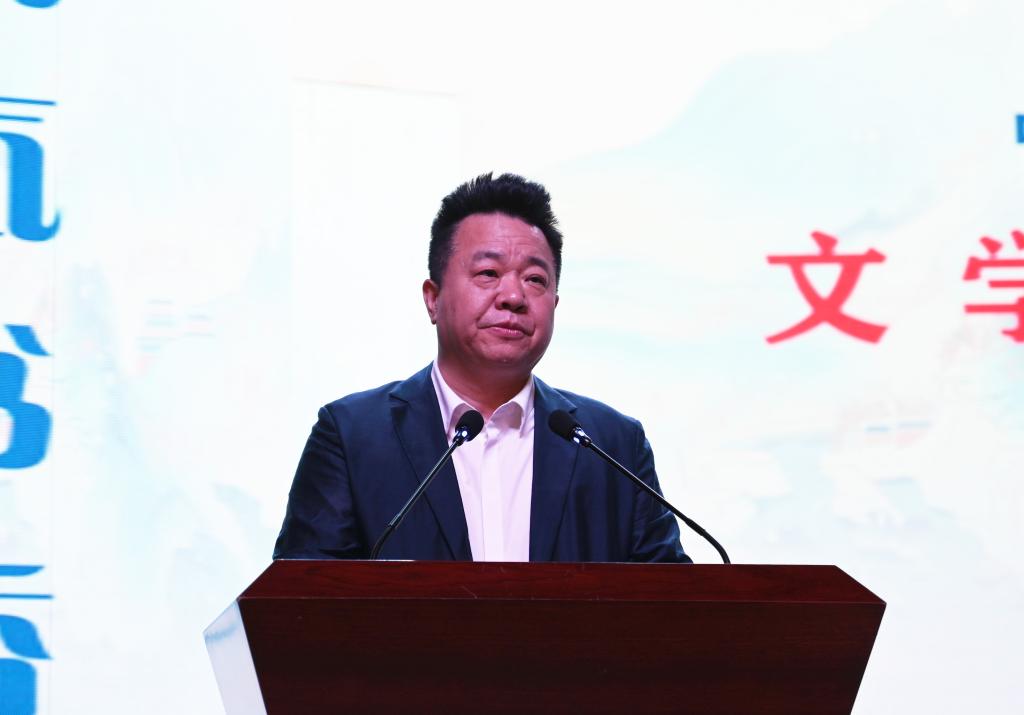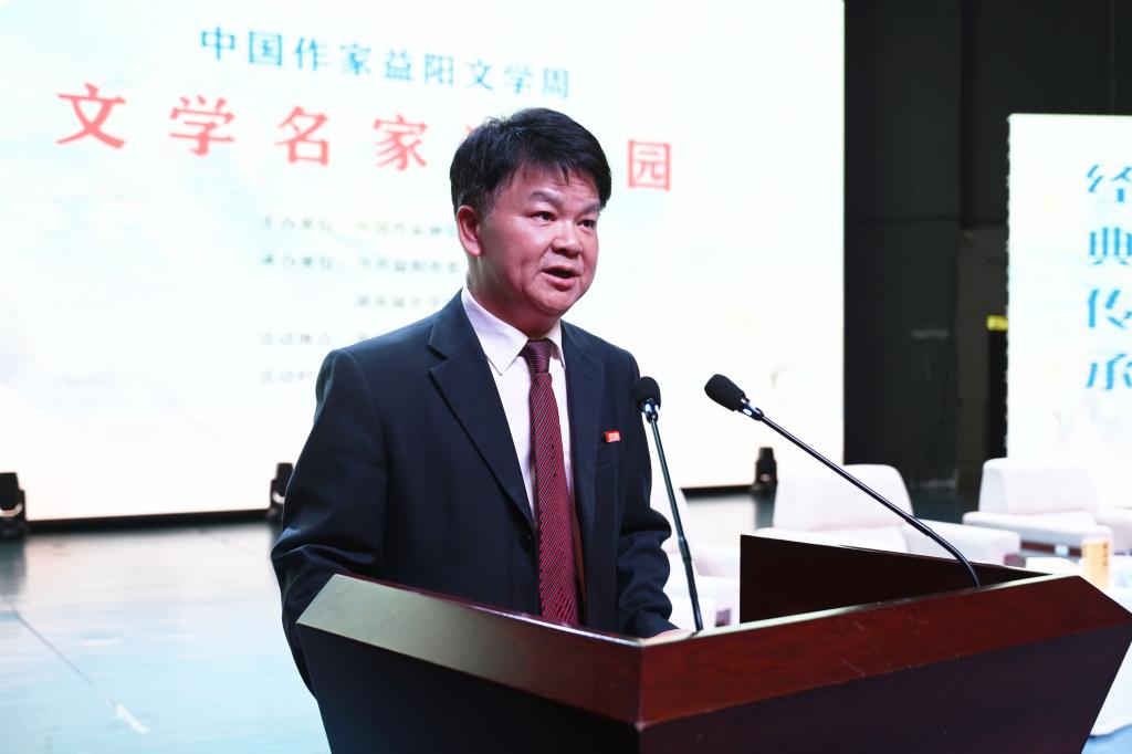 汤放华代表学校全体师生对与会作家和嘉宾的到来表示热烈欢迎。他表示,有着2000多年历史的益阳,人文积淀深厚、文化价值多元、文化名人辈出,书香洒满了山乡大地。江南在线作为益阳市最高学府,注重以文化人,以文赋能乡村振兴,成立了一批红色文化研究基地,立项了一批关于红色文化的国家级、省级重大科研教改项目,推动师生把红色文化资源利用好、把红色传统发扬好、把红色基因传承好。今天我们有幸迎来了一批文学名家走进校园,与他们面对面交流,共襄一场文化的盛宴,共赴一程精神的旅行。这是益阳人民的一件盛事,更是我们学校的一件盛事。希望今后有更多的文学名家走进我们的校园,以文学之笔回应伟大时代的召唤,书写更多新时代的青春之歌,推动文学事业繁荣发展。