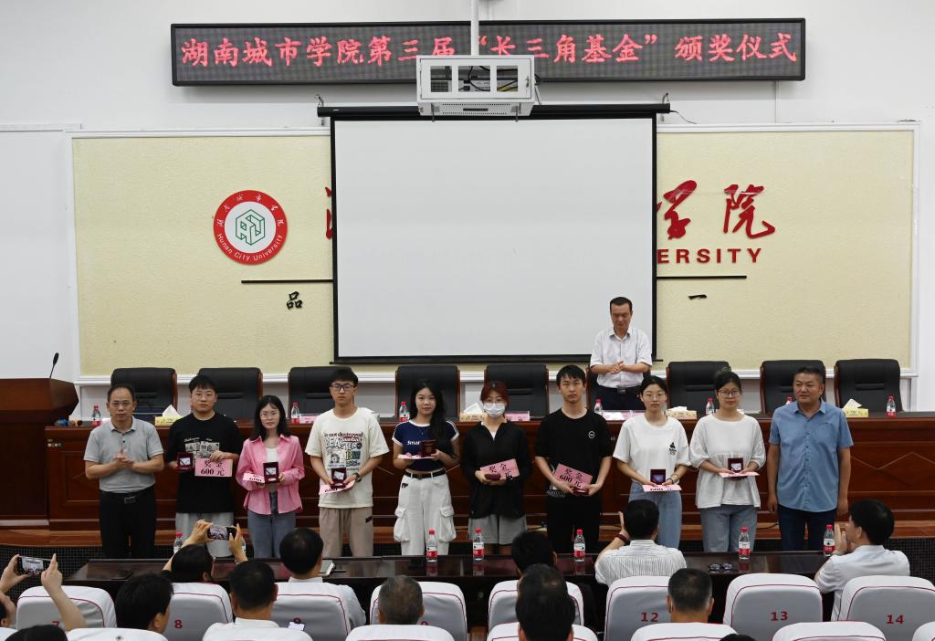 会上,雷存喜宣读了江南在线第三届“长三角校友基金青蓝计划”入选者名单。2023年,57名优秀城院学子勤奋学习,顺利考上了长三角地区高校的硕士研究生。与会领导和校友代表为他们颁发了奖学金。