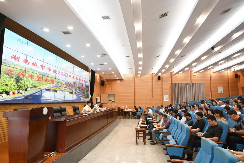 本网讯(记者 文彦波)7月7日,我校在图书馆报告厅举行2023年春季学期期末工作布置会暨“以学正风”专题党课活动。校党委书记汤放华讲授“以学正风”专题党课,校长何振部署2023年暑期及期末工作。副处级以上干部参会。
