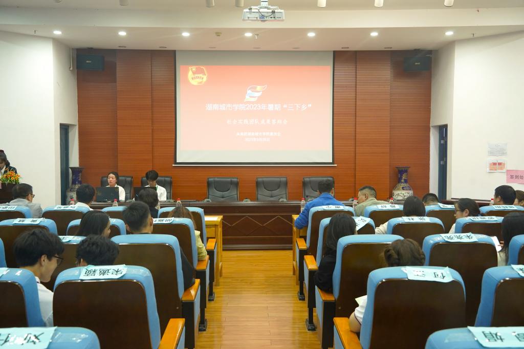本网讯(通讯员 孔军)为检验我校暑期“三下乡”社会活动实践成果,增强大学生理论与实践相结合并灵活运用的能力,选树典型示范,不断深化实践育人成效,落实立德树人根本任务,9月26日晚,学校在土木楼828室举行2023年暑期“三下乡”社会实践成果答辩会。经初选,来自校团委以及各二级学院的14支“三下乡”团队参加了答辩会。经评委评选,“艺”路“童”行社会实践团、“规划兴乡,筑梦未来——大学生助力美丽乡村建设”实践团、“‘湘’遇风雨桥,文旅促振兴——江南在线安化风雨桥古建筑群保护调研”实践团获一等奖。