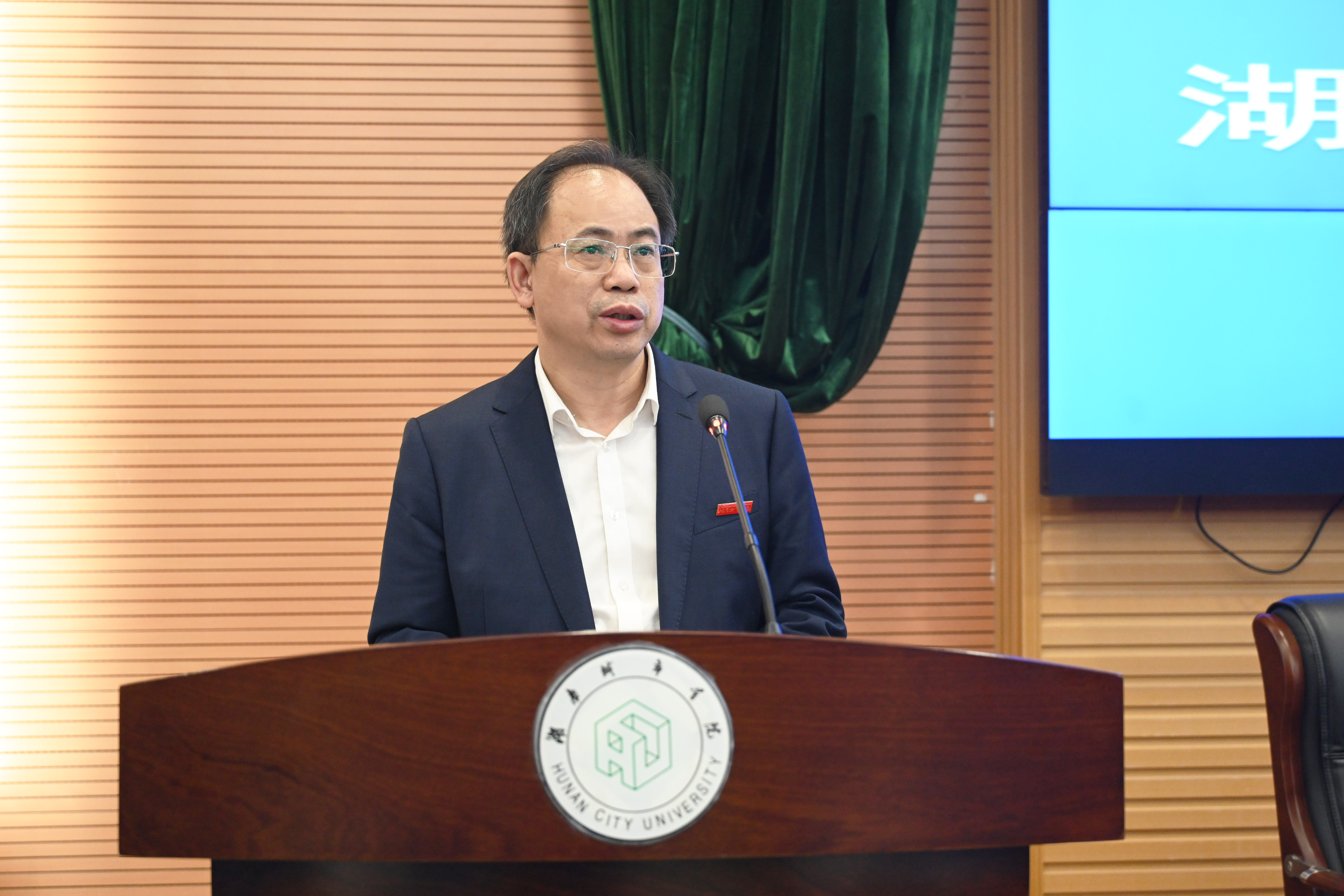汤放华强调,面对新时代高等教育发展机遇和挑战,要以习近平新时代中国特色社会主义思想为指导,始终坚持社会主义办学方向,全面深化改革,团结奋斗,以更加饱满的工作热情,更加务实的工作作风,更加有力的工作举措,努力担当作为,为建设特色鲜明的高水平应用型大学贡献智慧和力量,积极投身教育强国建设民族复兴伟业!