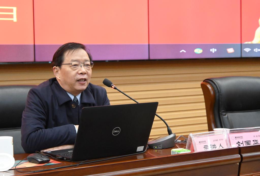 随后,汤放华以“培根铸魂,担当作为,争做学校改革发展先锋”为题作了辅导报告,从“筑牢理想信念之基”“练就担当作为的本领”“争做改革发展的先锋”三个方面进行了阐述,对新时期领导干部的履职提出了要求。他表示,作为党和国家人才培养的主基地,高校干部要把坚定理想信念作为终身课题,守好、种好、管好组织交给的“责任田”,深刻把握教育发展规律,以实干担当、履职尽责来诠释对党忠诚。要强化担当的意识,练就担当的本领,掌握担当的艺术。要深刻认识高等教育发展的新形势和新挑战,在学校推进高质量发展中争当先锋。