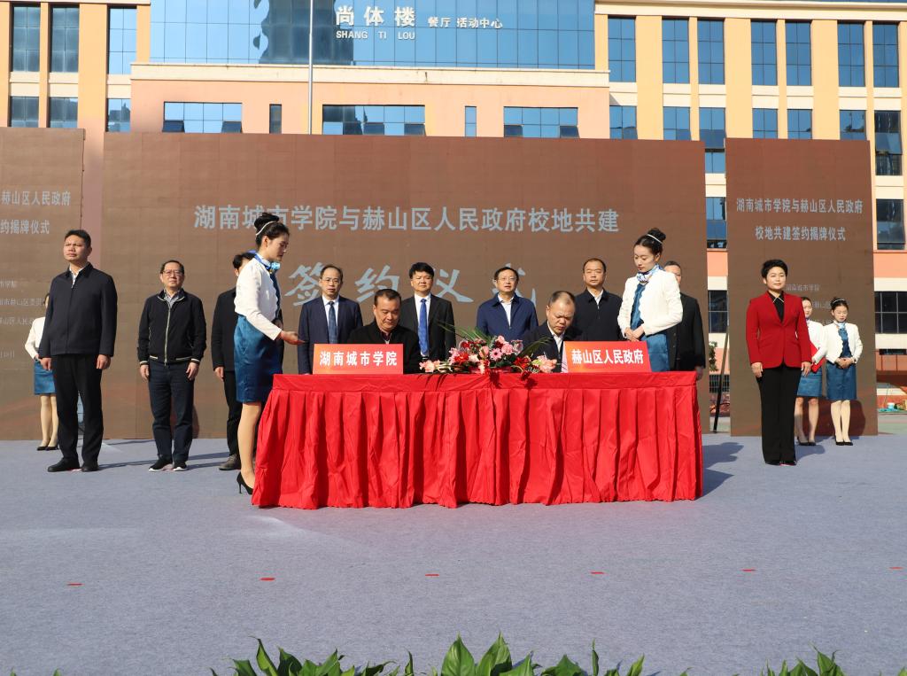 仪式上,我校党委书记汤放华、赫山区区委书记周卫星为江南在线附属梓山湖学校揭牌;副校长雷存喜与赫山区副区长赵嘉喜签订校地共建框架协议书。