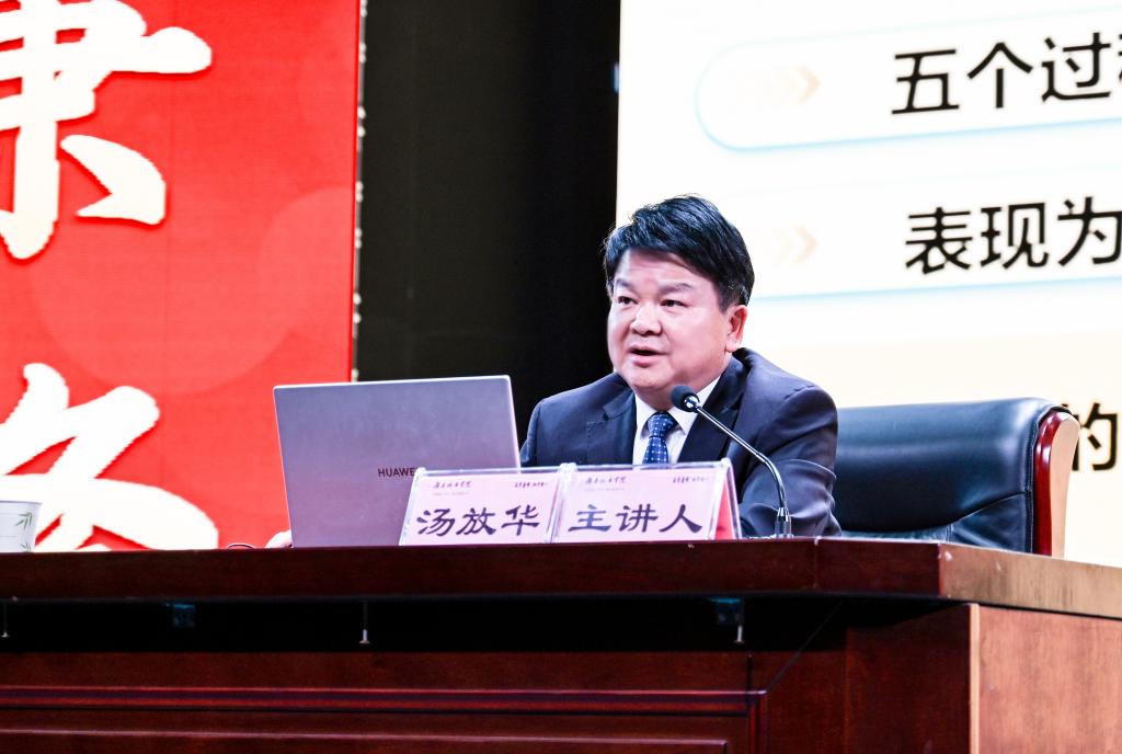 汤放华最后勉励在场的青年学生党员要大力弘扬伟大建党精神,做可堪大用、勇担重任的栋梁之才,将个人成长的小目标,融入强国建设的大蓝图,脚踏实地长才干,知行合一向未来,为中国式现代化不断贡献青春智慧和力量。