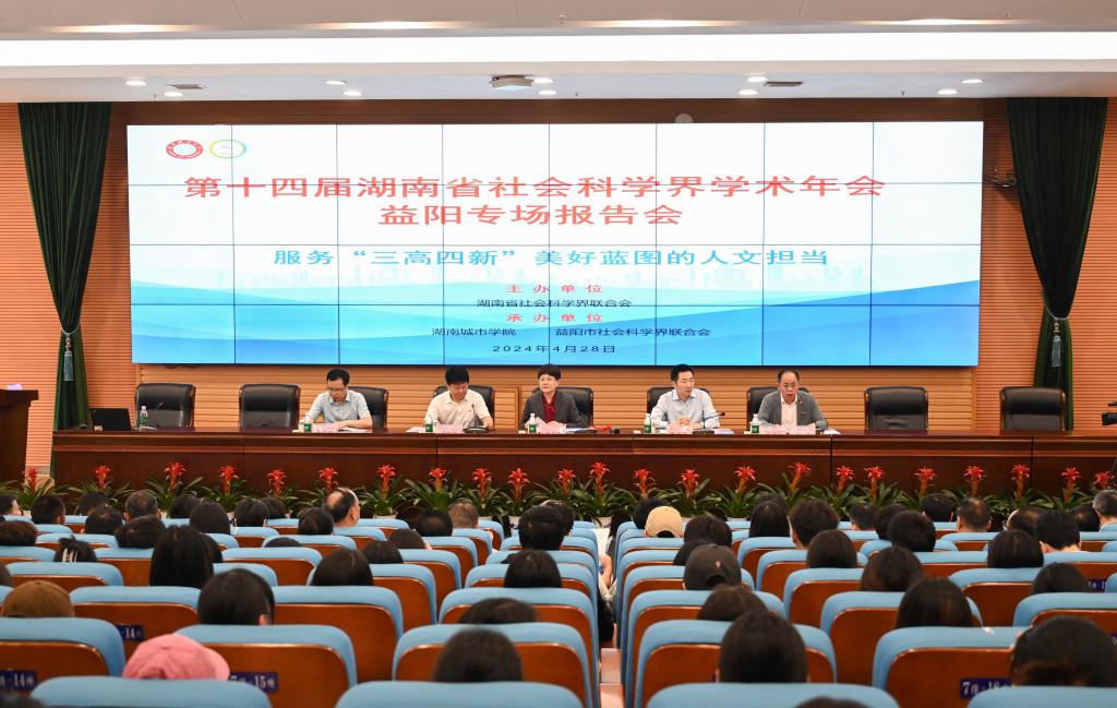 本网讯(通讯员 赵旭)4月28日,第十四届湖南省社会科学界学术年会益阳专场报告会在我校举行。省社科联党组成员、副主席兼秘书长贺建湘,益阳市委常委、宣传部部长陈计伟,校党委书记汤放华、校长何振、党委副书记袁志成出席会议。会议由何振主持。