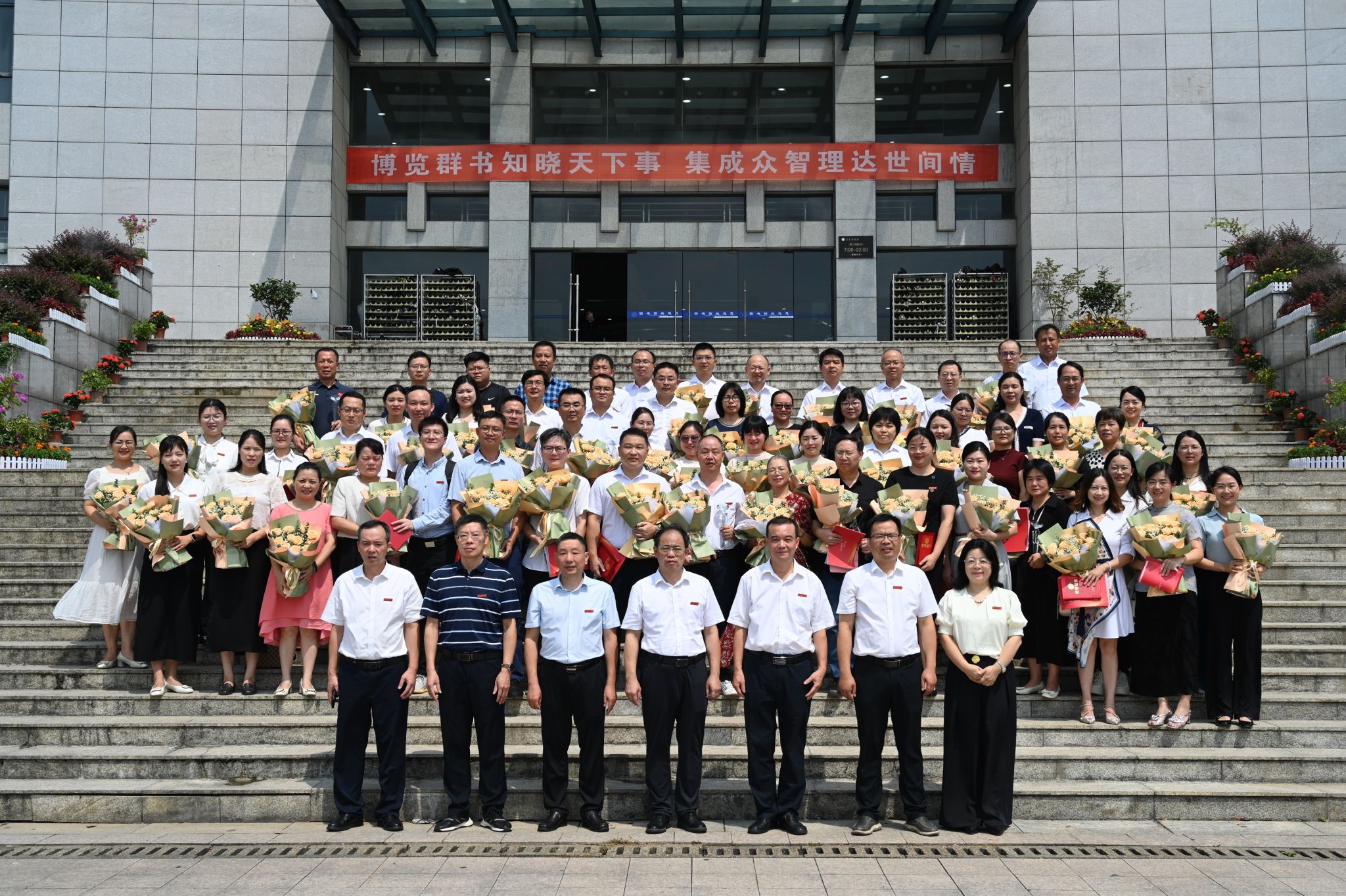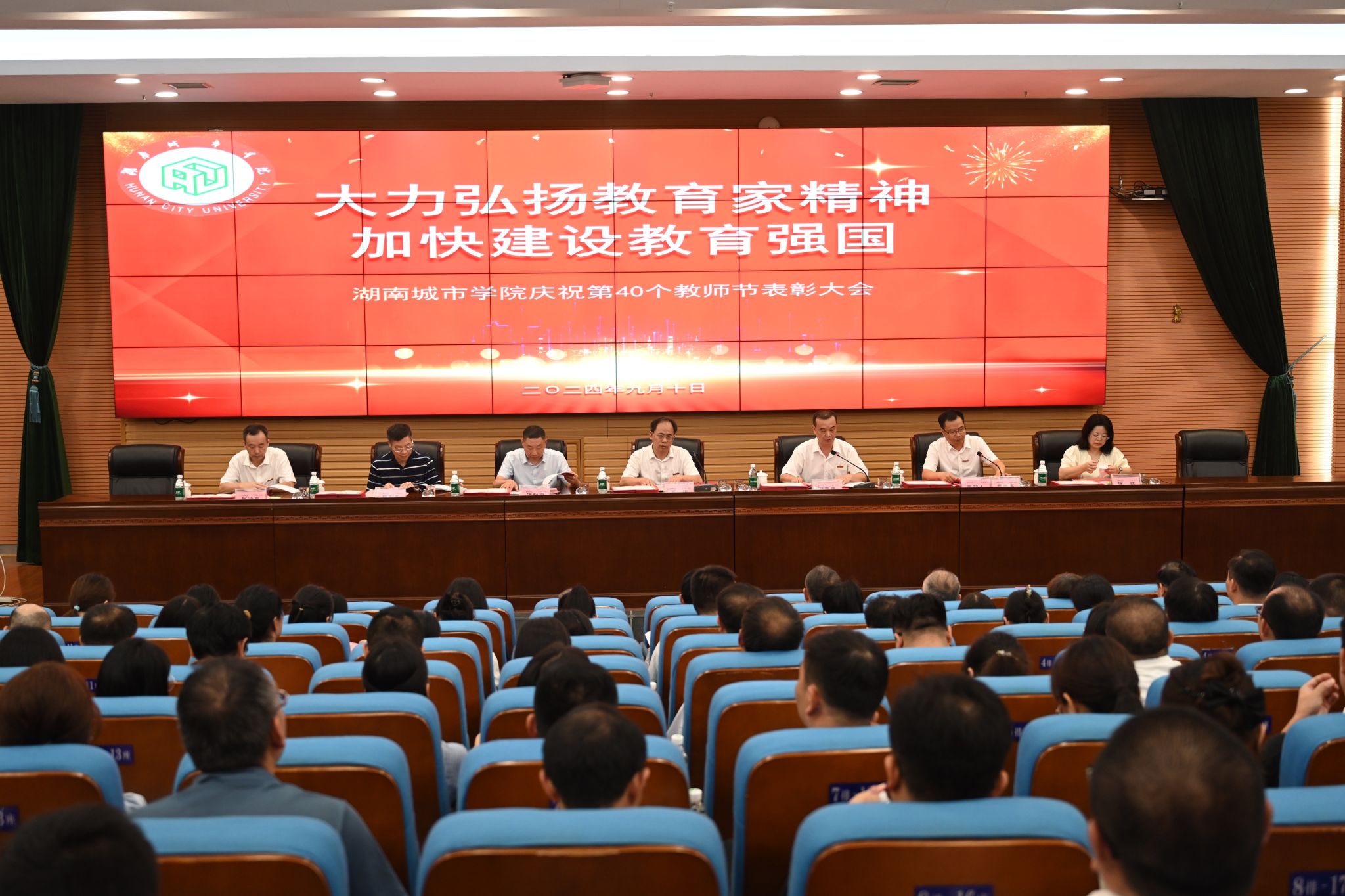 本网讯(通讯员 曾伟)9月10日上午,江南在线第40个教师节表彰大会在图书馆报告厅隆重召开。校长何振出席会议并讲话,校党委副书记袁志成主持会议。在家的校领导,学校各单位主要负责人、受表彰对象、教授、博士、青年教师代表共200余人参加会议。