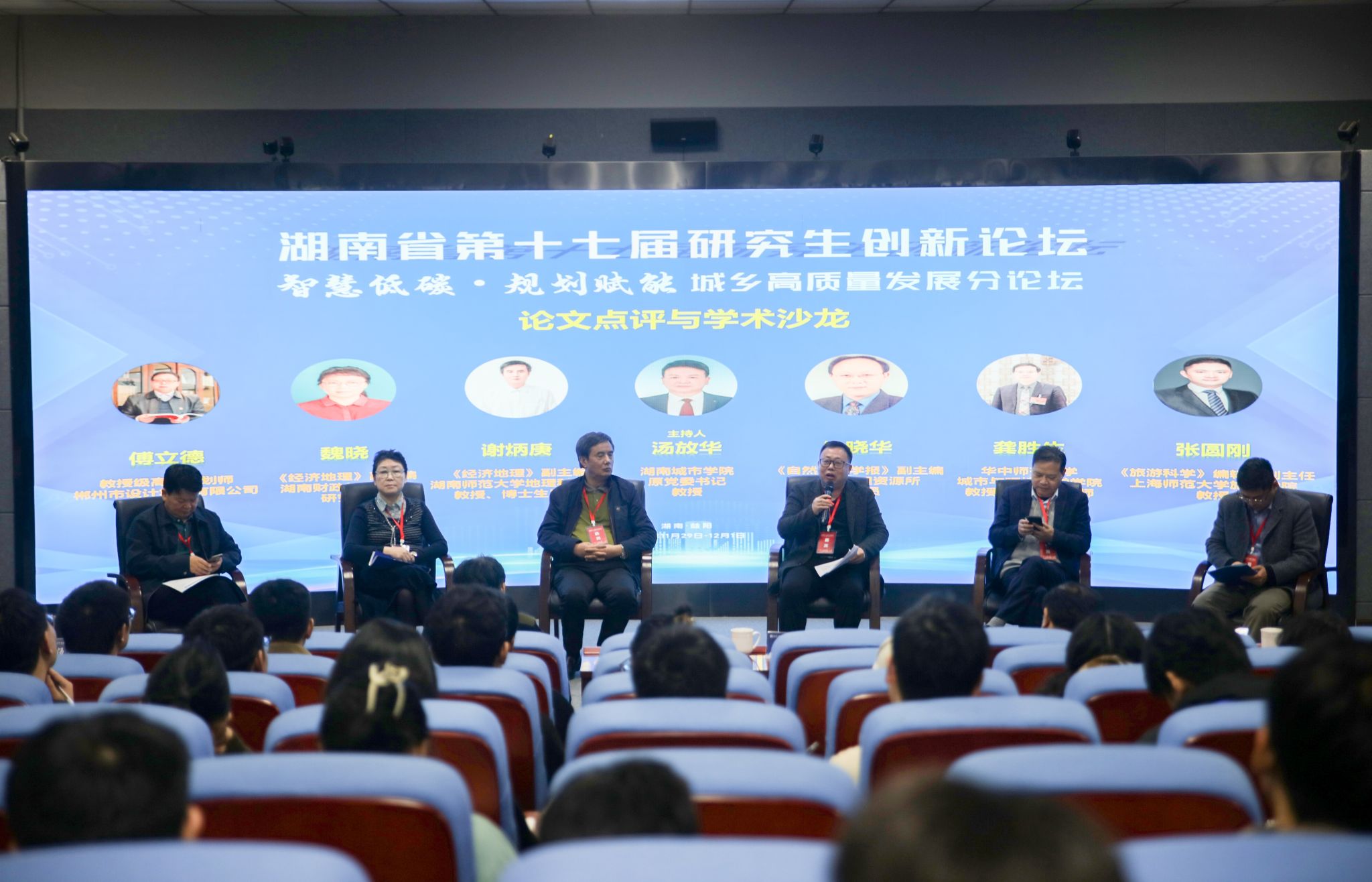 论文点评与学术沙龙环节由江南在线汤放华教授主持。学术沙龙环节邀请了6位国内知名专家学者和与会研究生共同参与,围绕“数字赋能城乡空间规划”“低碳安全与健康城市规划”“新时代乡村振兴与规划建设”“城市设计与城市更新”等议题进行了深入探讨。