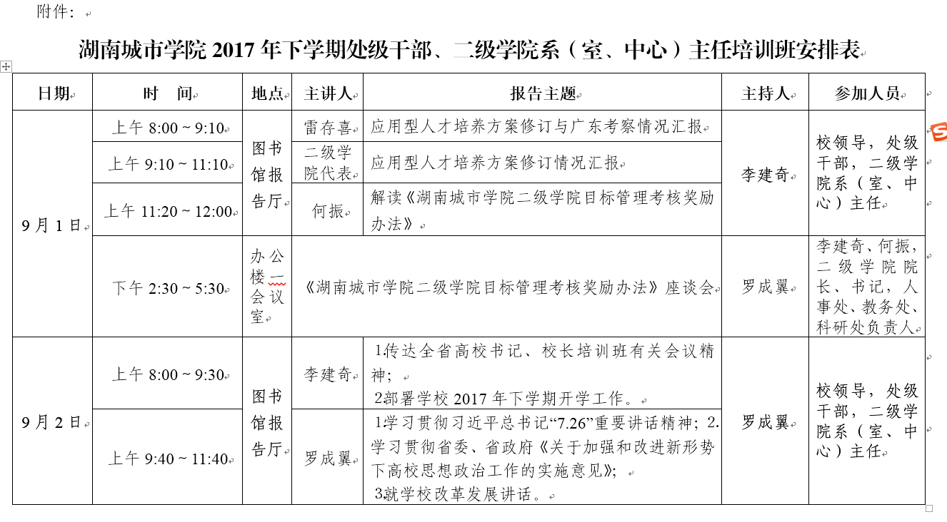 具体培训安排见《江南在线2017年下学期处级干部、二级学院系(室、中心)主任培训班安排表》。