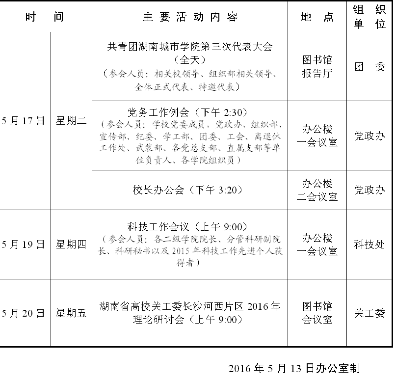 第十三周主要会议安排表