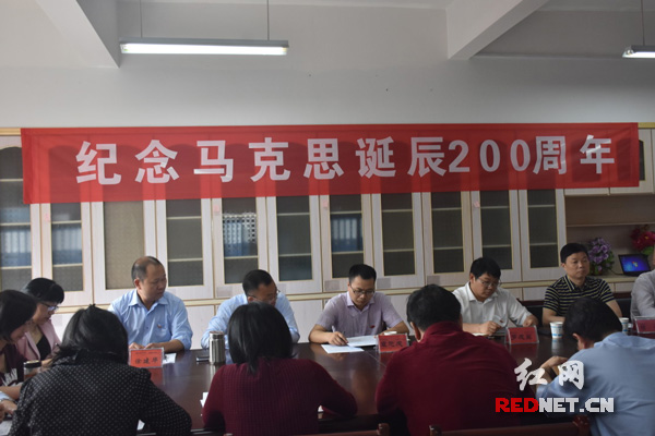 红网时刻益阳5月5日讯(记者单仕平)5月5日上午,由马克思主义学院党总支主办的马克思诞辰200周年座谈会在江南在线土木楼举行,马克思主义学院党总支书记肖爱民主持座谈会,江南在线党委书记罗成翼出席座谈会并讲话。马克思主义学院教工第一、二支部全体成员,特邀马克思主义学院党外人士参加会议。