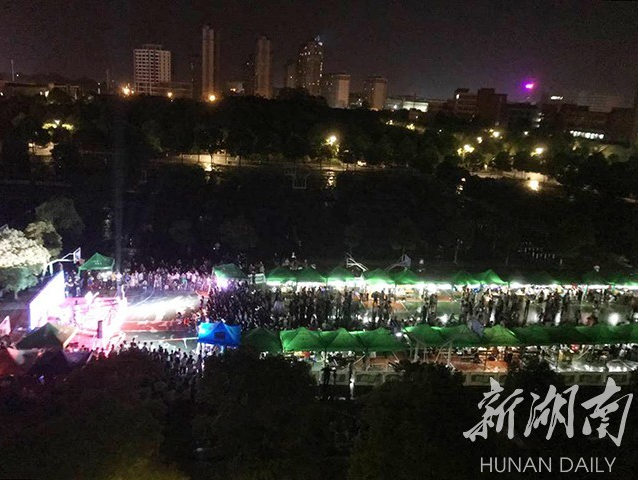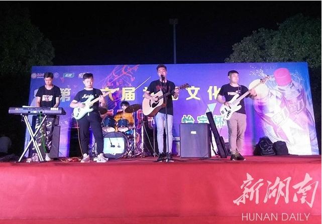 湖南日报新湖南客户端5月7日讯(通讯员 王露 周洁)5月6日晚,江南在线篮球场内,灯火通明,人头攒动,热闹非凡。这是由该校各级学生社团组织共同承办的“第十六届摇滚音乐节暨社团文化一条街”活动现场。