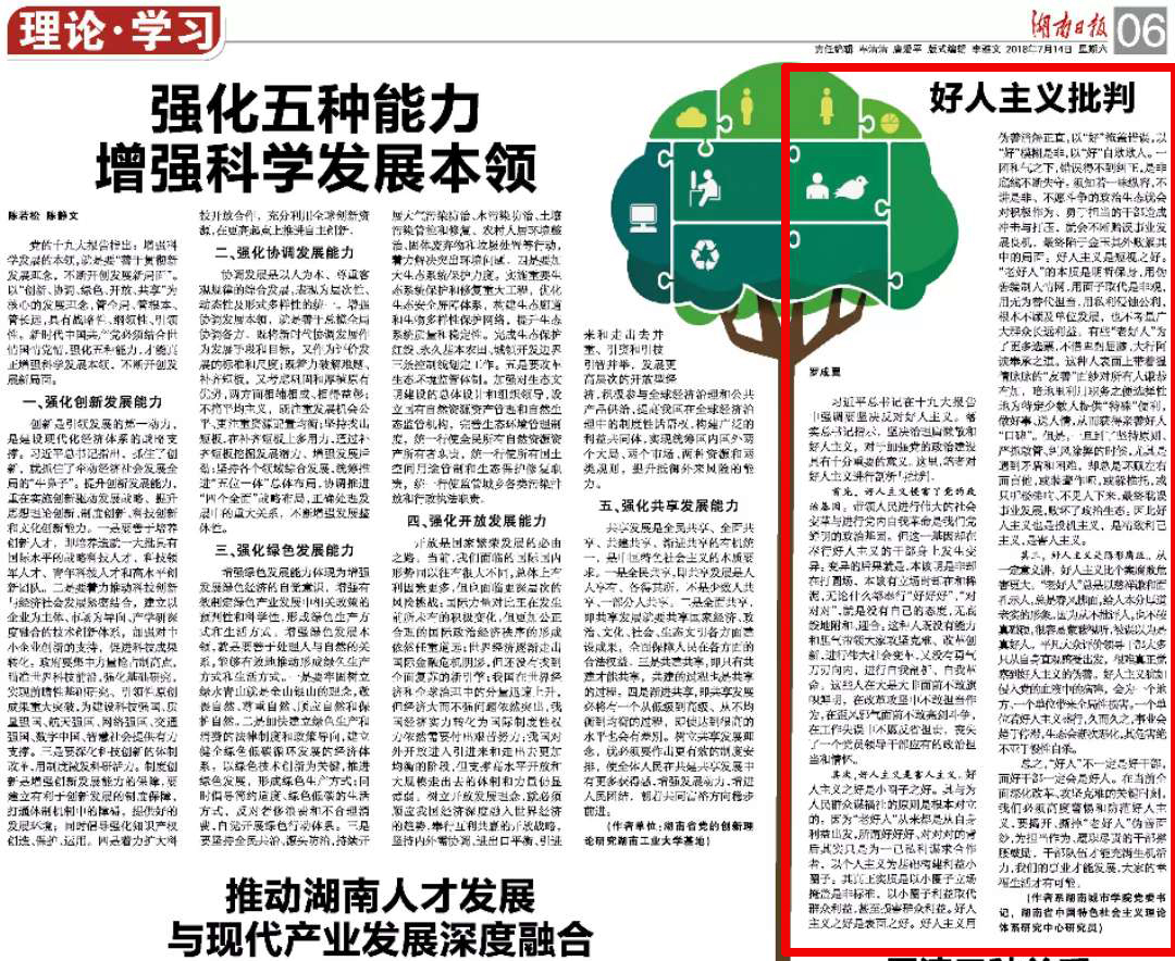 《湖南日报》刊发党委书记罗成翼撰写的文章:好人主义批判