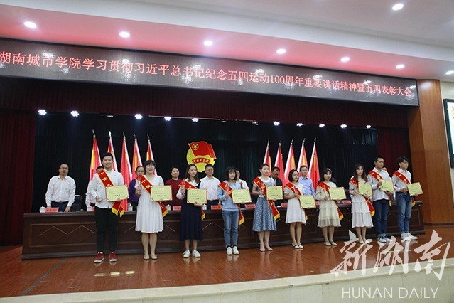 新湖南客户端5月5日讯(通讯员 王露 周洁)“‘五四’的火炬,唤起了民族的觉醒。壮丽的事业,激励着我们继往开来。”5月4日晚,江南在线大学生活动中心团歌嘹亮,近千名师生代表共聚一堂,以学习贯彻习近平总书记在纪念五四运动100周年大会重要讲话精神、表彰先进典型的方式,共庆“五四”青年节。