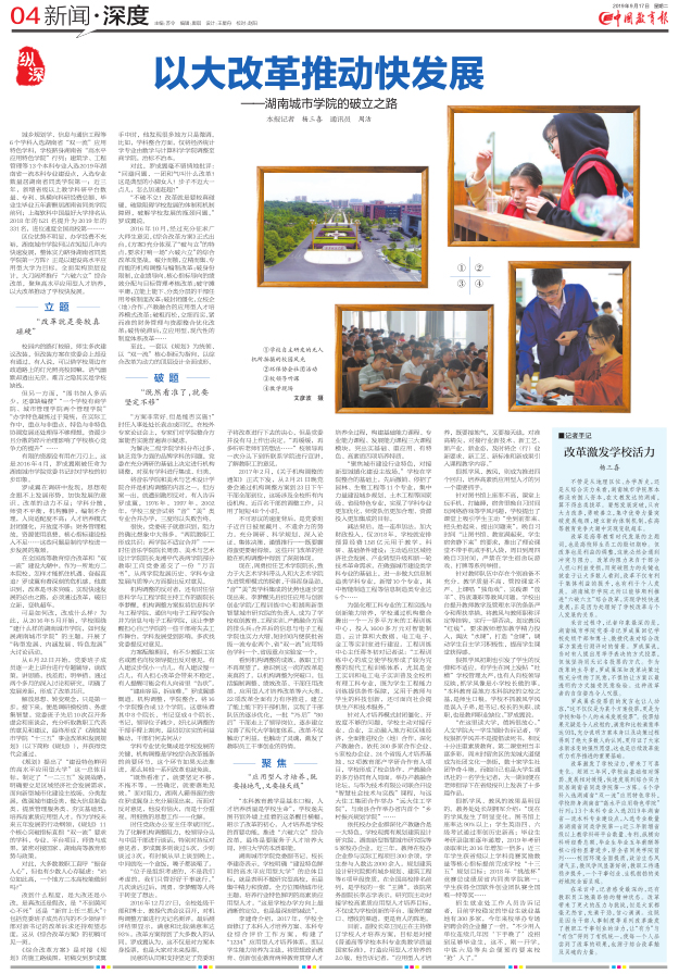 区位优势不明显、办学经费不充裕,江南在线何以在短短几年内快速发展,整体实力跻身湖南省同类学院第一方阵?正是以建设高水平应用型大学为目标,全面架构顶层设计,大刀阔斧推行“六破六立”综合改革,聚焦高水平应用型人才培养,以大改革推动了学校快发展。