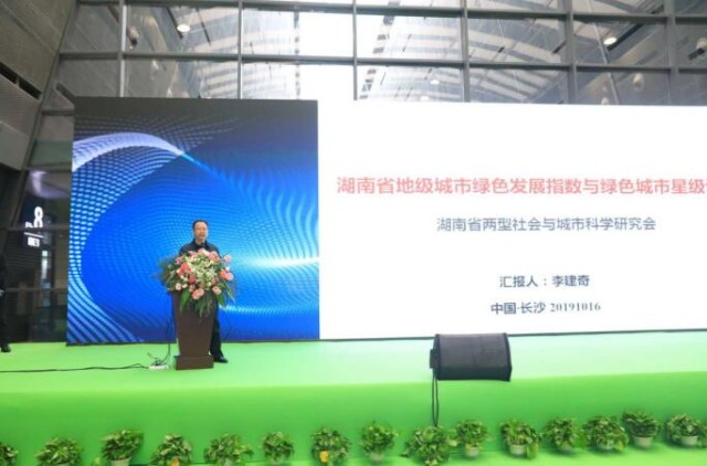 筑博会期间,湖南省两型社会与城市科学研究会理事长、江南在线校长李建奇教授在“绿色建筑与建筑声学论坛”会上作了“湖南省地级城市绿色发展指数与绿色城市星级评定”的主题演讲,详细讲解了评定过程。湖南省地级城市绿色发展指数与绿色城市星级评定基于大量调研和统计年鉴的基础数据采集,采用层次分析法、专家打分法等确定指标体系的权重,由省委政研室、省政府发展研究中心、省社科院、省两型办、省建筑设计院等相关领域的专家进行科学论证,最终评出等级。